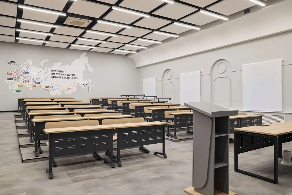 Проект обновления аудиторий Петербургского государственного университета путей сообщения (ПГУПС) направлен на создание удобной и современной образовательной среды, учитывающей потребности как студентов, так и преподавателей. Задача дизайнера состояла в том, чтобы в будущем пространстве все элементы были направлены на оптимизацию учебного процесса, и в то же время обеспечивали комфорт и удобство учащихся.